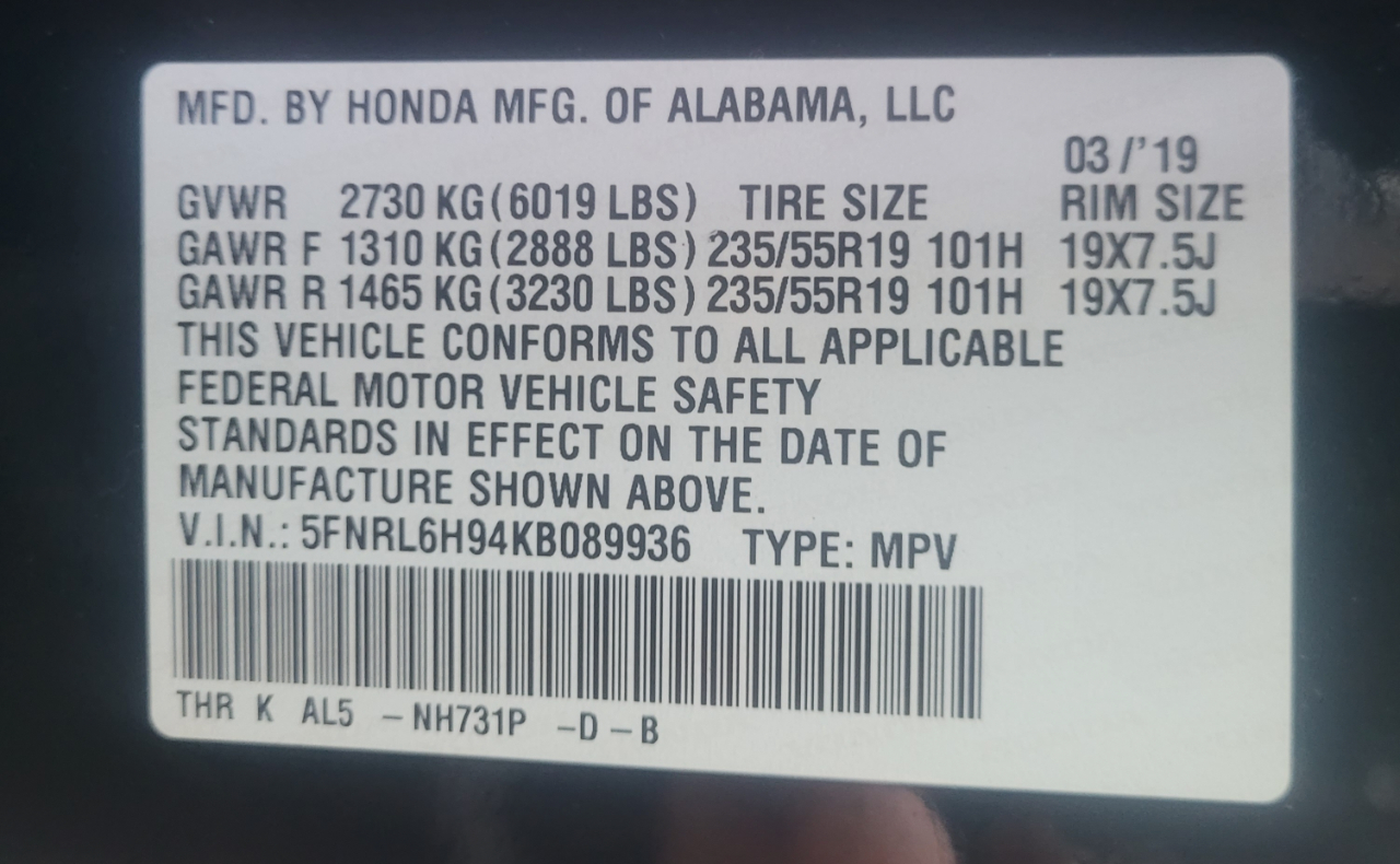 5FNRL6H94KB089936